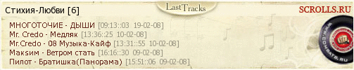 User profile Наказания: Interests: психология, общение, стихосложение Friends: Снежная Кошшка, Makita San, Shadow-x, Ex*Goddess of Sun, Dea, Daminest, Оззи Осборн, Перегар_Демида, гранд-голд, Ex*Effekt In friend lists: Ex*Goddess of Sun, Shadow-x, Makita San, Daminest, Крод, Оззи Осборн, Jifantroop, Ex*Effekt Popular tracks: Mr. Credo - Медляк МНОГОТОЧИЕ - ДЫШИ Макsим - Ветром стать Пилот - Братишка(Панорама) Mr.Credo - 08 Музыка-Кайф Latests tracks: ![]() show/hide code Любить я буду вечно тех, кто примет в сердце этот грех |